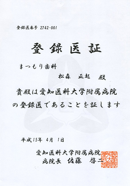 開業以来、「患者さんのことを第一に考え、誠意を持って治療していれば、いつか患者さんにも分かってもらえる」を身上に頑張ってきました。特に患者さんとのコミュニケーションを大切にして、保険の範囲で丁寧な説明と誠実な患者さん本意の痛くない治療を常に心がけています。 ![]() ![]() 経歴